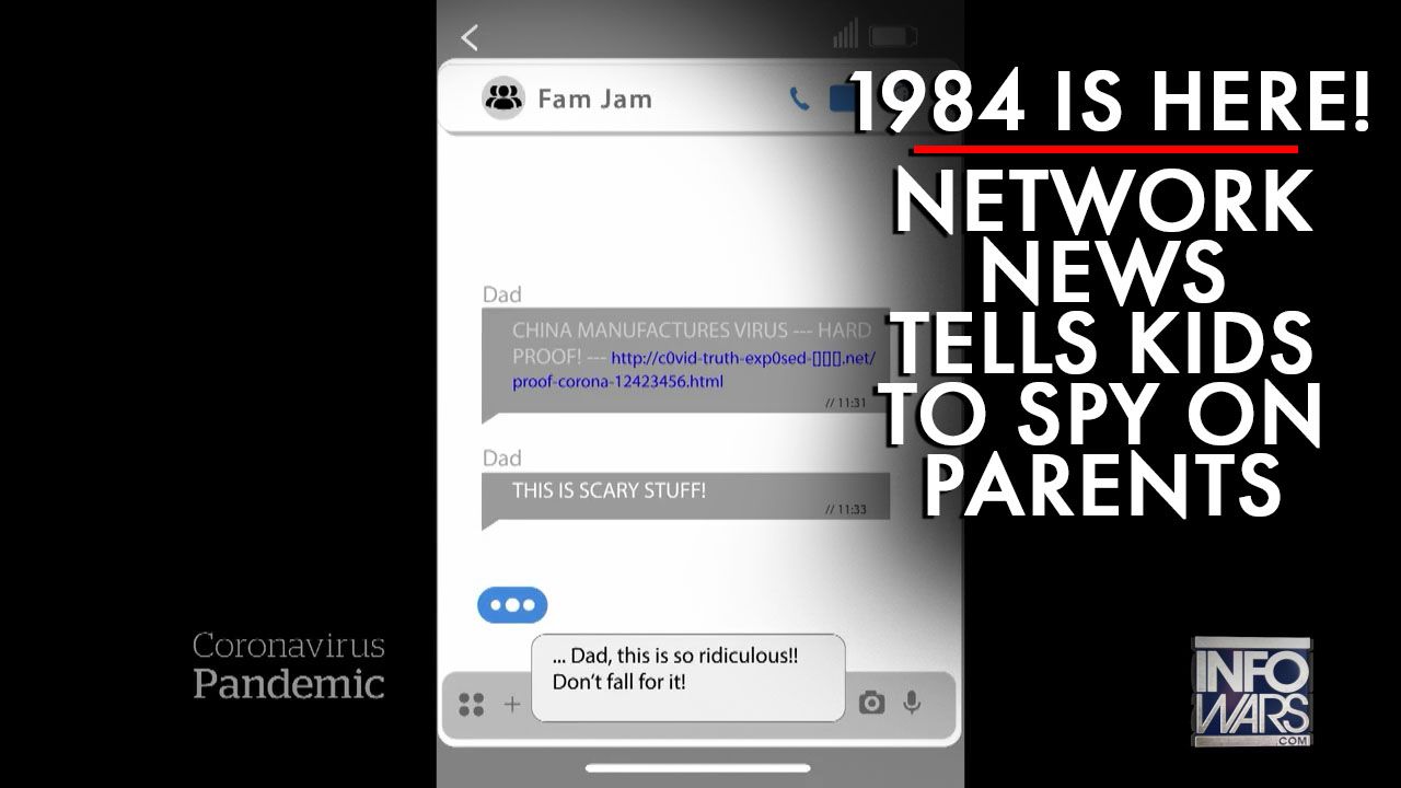 Alex Jones explodes with rage as a network news report teaches kids to spy on their parents for questioning the official narrative of the covid-19 pandemic.