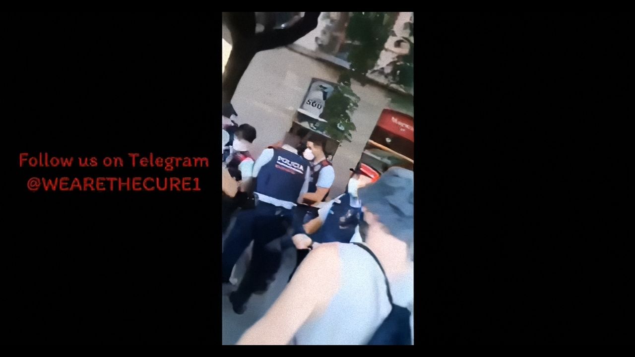 Population joined a woman without a mask Police want Arrest. Everyone took off their mask and protect Her! The Police back up!