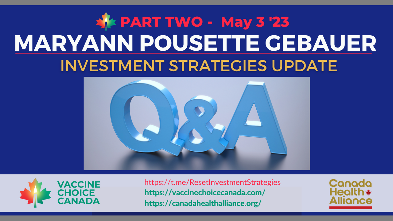PART 2 of the Investment Strategies Update from May 3/23 - Maryann Gebauer BSc. MBA answers your questions and gives uplifting advice to help you through these trying times.
