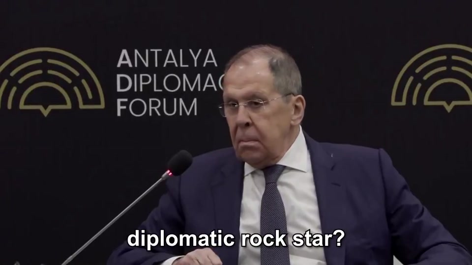 Reporter asks Lavrov, "How does it feel to be a diplomatic rockstar?"