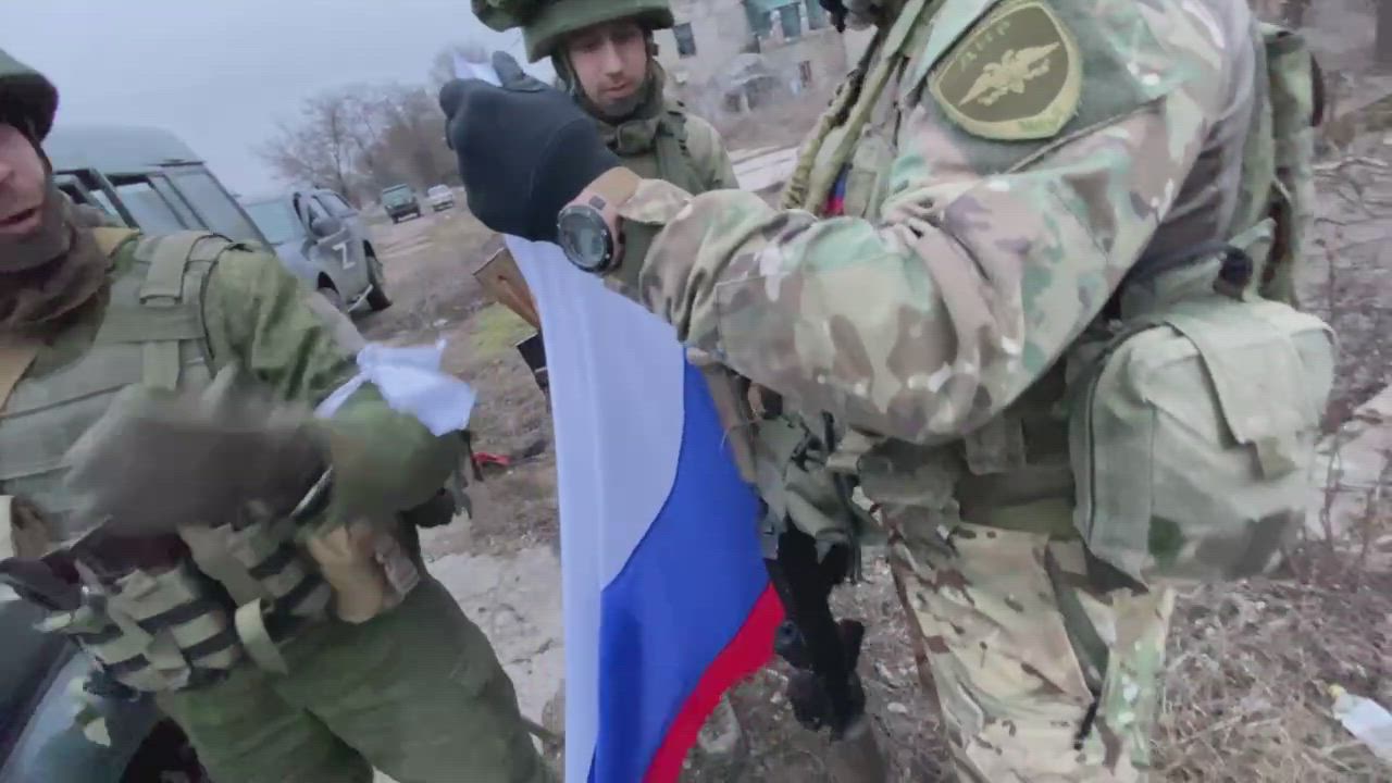 Tricolor Russian Flag Flying Now in Pavlopil!, Ukraine 022722