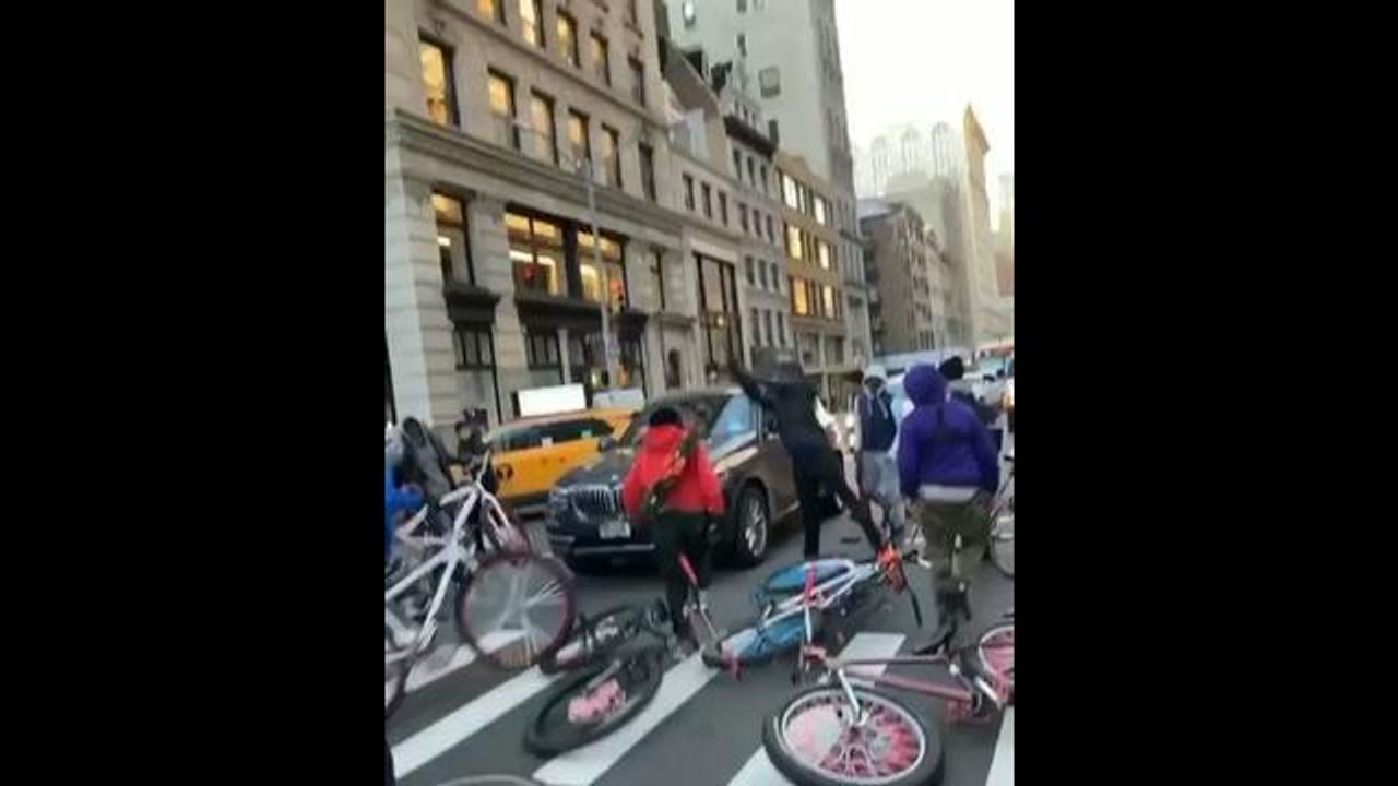 ANOTHER ANGLE OF THE RIOTOUS YOUTHS SWARMING & ATTACKING A DRIVER IN MANHATTAN AFTER THEY SHUT DOWN