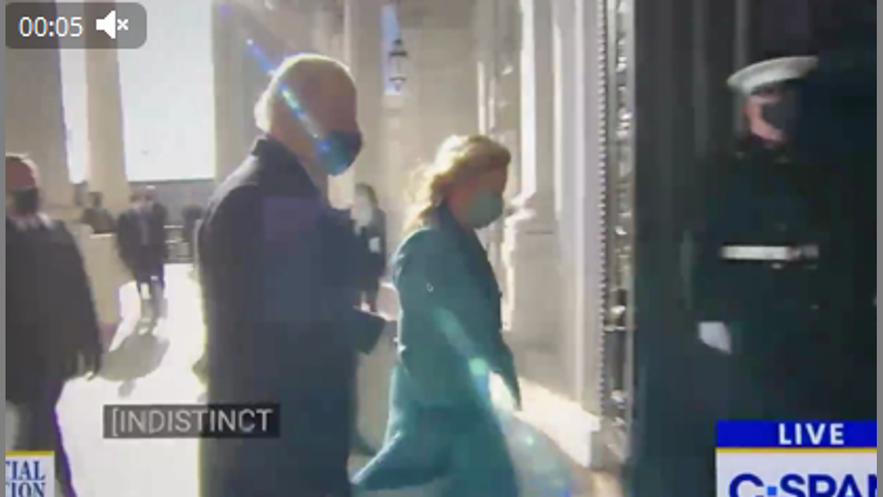 Beijing Biden appears to hear, "salute the marines" in his earpiece & repeats the command aloud, instead of performing the action @ 00:10