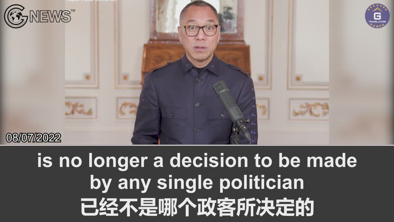 8/7/2022 Miles Guo: With a series of Taiwan policies introduced in the US, Taiwan is indeed already independent. The US and Europe will take back Hong Kong, and protect and support the people of Xinjiang and Tibet as never before