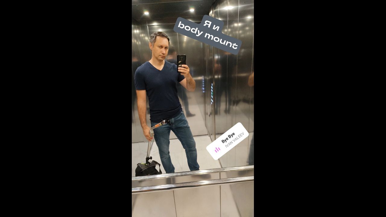 Camera technique Body Mount (Snorricam) - the camera is mounted on the actor's torso.