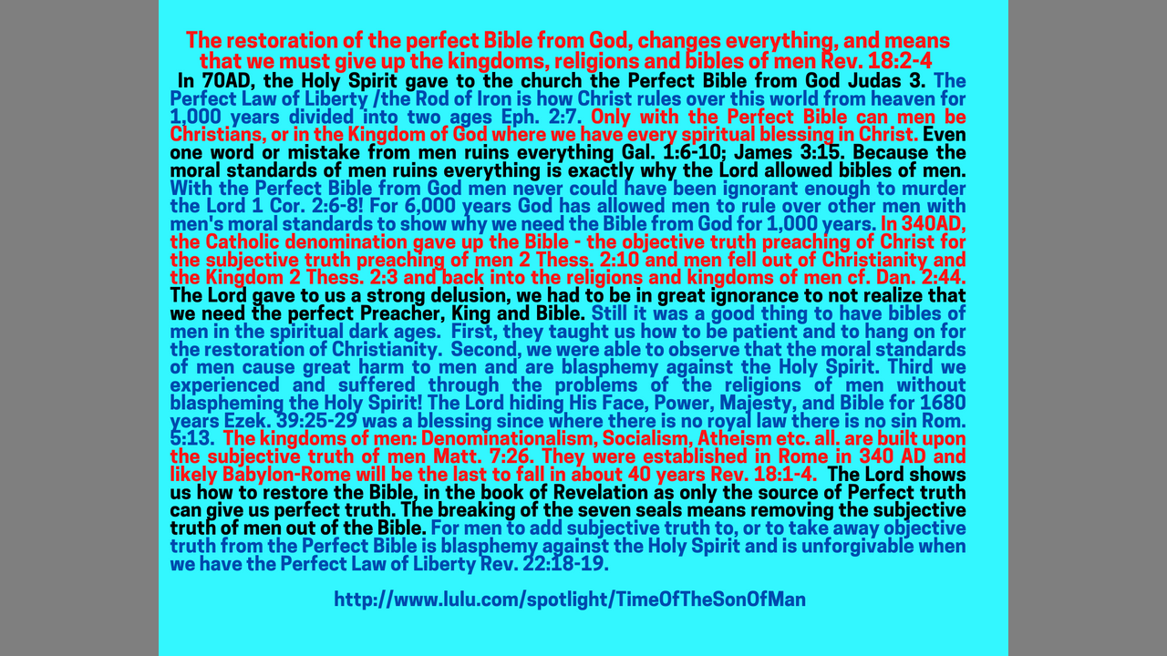 https://therodofiron.org/?page_id=263 rumble under n5rkss telegram @ https://t.me/TheRodOfIron.org. https://www.patreon.com/The_WatchmanTo purchase a New Testament: http://www.lulu.com/spotlight/TimeOfTheSonOfMan To support this work; https://paypal.me/Watchman70AD?locale.x=en_US.