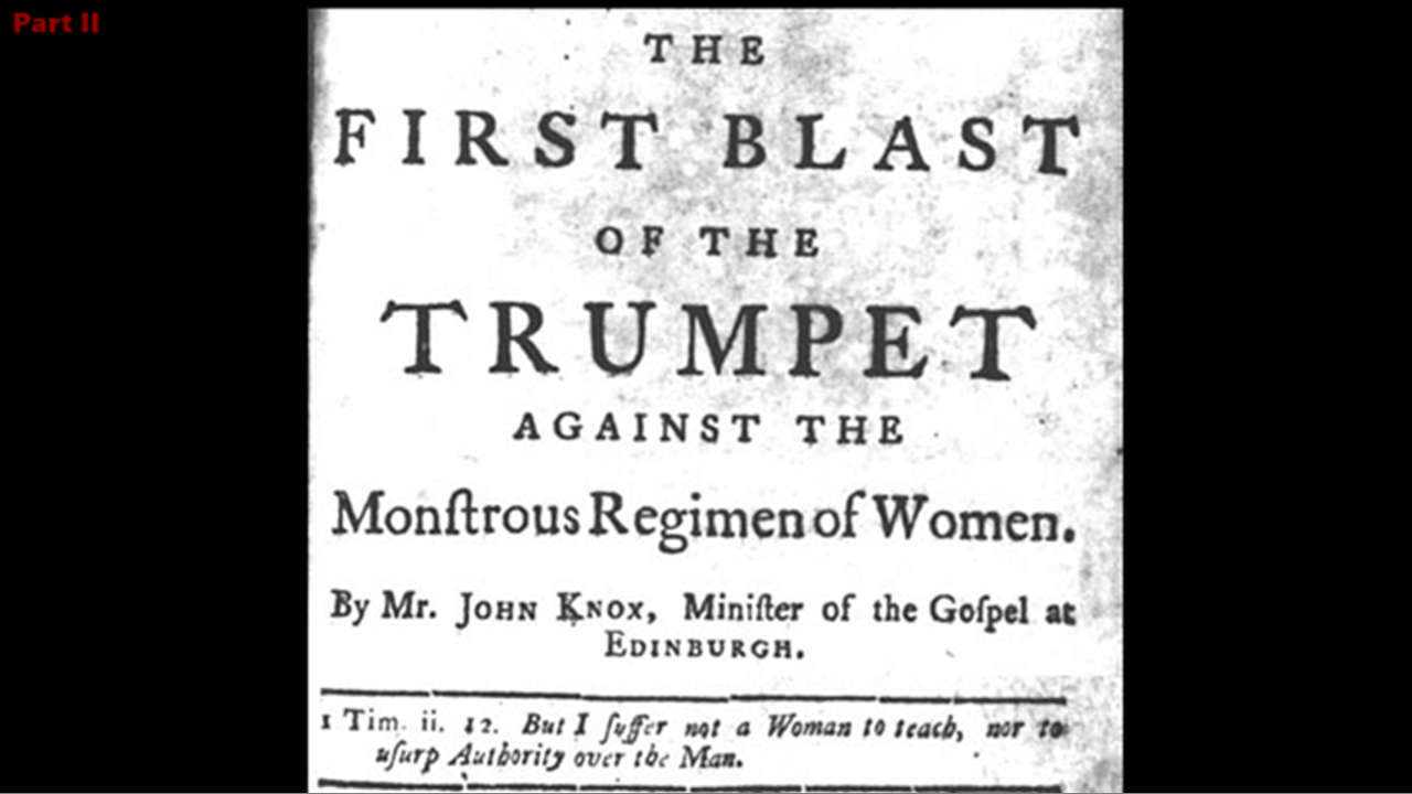 John Knox 1558 'First Blast Of The Trumpet Against The Monstrous Regimen Of Women' pt2 [Women Not To Rule Over Men]