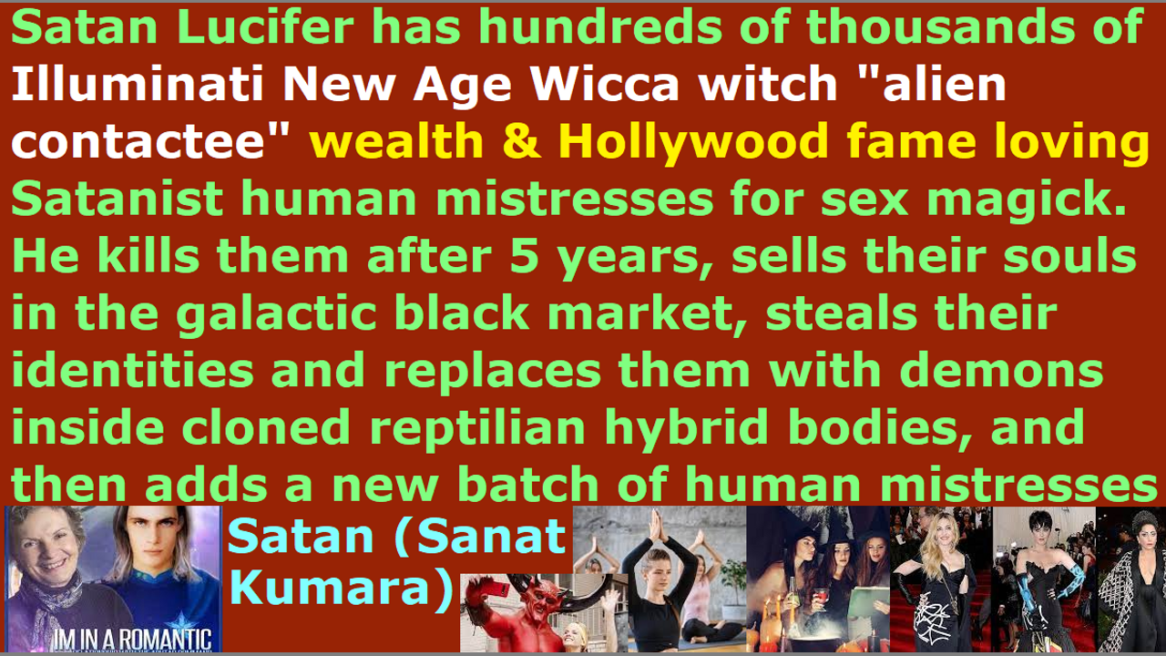 *** Intelligence news update from the Human Homo-Sapiens Race Survival Resistance (HRSR) headquarters and Republic Rebel Alliance battlefront (April 2022). Satan Lucifer (Sanat Kumara) has hundreds of thousands of Illuminati NWO Luciferian Satanist New Age Wicca witch “alien contactee” “ascended master contactee” necromancy spirit guide channeling human feminist mistresses, who he has sex magick with. They get corporate executive millions of dollars of wealth and Hollywood fame and politician power and military authority and court judge prestige and church pastor worship and professor knowledge, but Satan Lucifer ends up killing them after about 5 years, and steals their identities and replaces them with demon spirits inside cloned hybrid human avatar reptilian hybrid bodies. They get alien abducted, and their human eggs and half-formed 4th dimensional invisible nephilim fetus are also removed from their wombs. Their souls are sold in the galactic black market. This is why 90% of Hollywood and the music industry are not humans, but they are Illuminati NWO demon spirit pedophile cannibal Satanist reptilian hybrid globalist elite New Age Wicca witch Satanists and Luciferians. They give the Illuminati devil’s horn or pyramid or all-seeing-eye or 666 hand sign to each other. They torture and lesbian rape and sacrifice and eat 12 million human specie children every year, and throw their leftover human meat into the McDonald’s restaurant and supermarket GMO & organic foods. 800,000 American children are kidnapped every year by Hillary Clinton’s CPS (Child Protective Services) child-trafficking CIA organization. The church pastors are “ordained & allowed & trained” by Satan Lucifer, so they remain silent out of fear of assassinations, and slaughtered families, and all incomes cut off, and cooked alive by CIA microwave oven weapons, and demons sent to attack, and witchcraft attacks, and ridicule from all their church donators as lunatic heretic idiotic narcotic maniacs. They are the Judas Iscariot fake “Bible’s watchmen on the wall.” Even worse, they insult God by modifying & sterilizing & diluting & picking & choosing & editing the 100% truth of God that we real Christians share to them, and they hide it from God’s spiritual army, in order to appease both Satan Lucifer and God, so that their home gas pipes will not get blown, and their car remote-controlled off cliffs, and shot with FBI pinpoint heart attack EMF weapons, and poisoned with sulfuric acid & polonium radiation & mercury & flesh-eating bacteria. They redefine the Bible verses to remove women’s head coverings so that their church members’ heads will be controlled by the fallen angels, and remove God’s spiritual protection, in order to release millions of fallen angel devils from the abyss. Meanwhile, they steal unbiblical post-1873 10% salary tithe income taxes, and refuse to sell their homes to refund the tithes to their church donators and apologize to their church members for stealing. They allow the 99% religious Christian hordes women, who Satan Lucifer flooded the churches with to kick out the real Christians, to cross-dress in “Satan Lucifer’s post-1960s cross-dress-project” men’s trousers and stick their naked women’s head middle finger up at God to mock God’s Bible verses. The Western feminist nations’ End Times apostate harlot Church and Satan Lucifer’s pre-1941 “The Plan’s” Bible prophecy rapture billion dollar industry’s pedophile cannibal Satanist reptilian hybrid pastors are under God’s judgment by sword & famine & plague & demon armies.