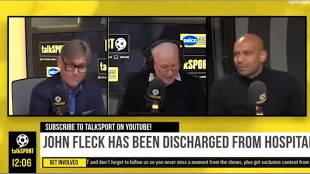 See how a television host is cut off mid sentence on live TV in the UK on Talk Sport. Jim White Show. Marc le Tissier, Travis Sinclair