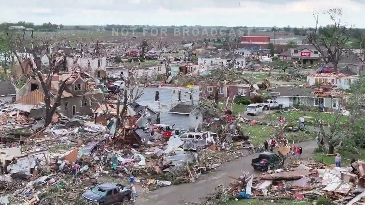 Horrific damage in Greenfield, IA as a catastrophic tornado ripped right through the middle of town. Drone shots take entire path through the town.