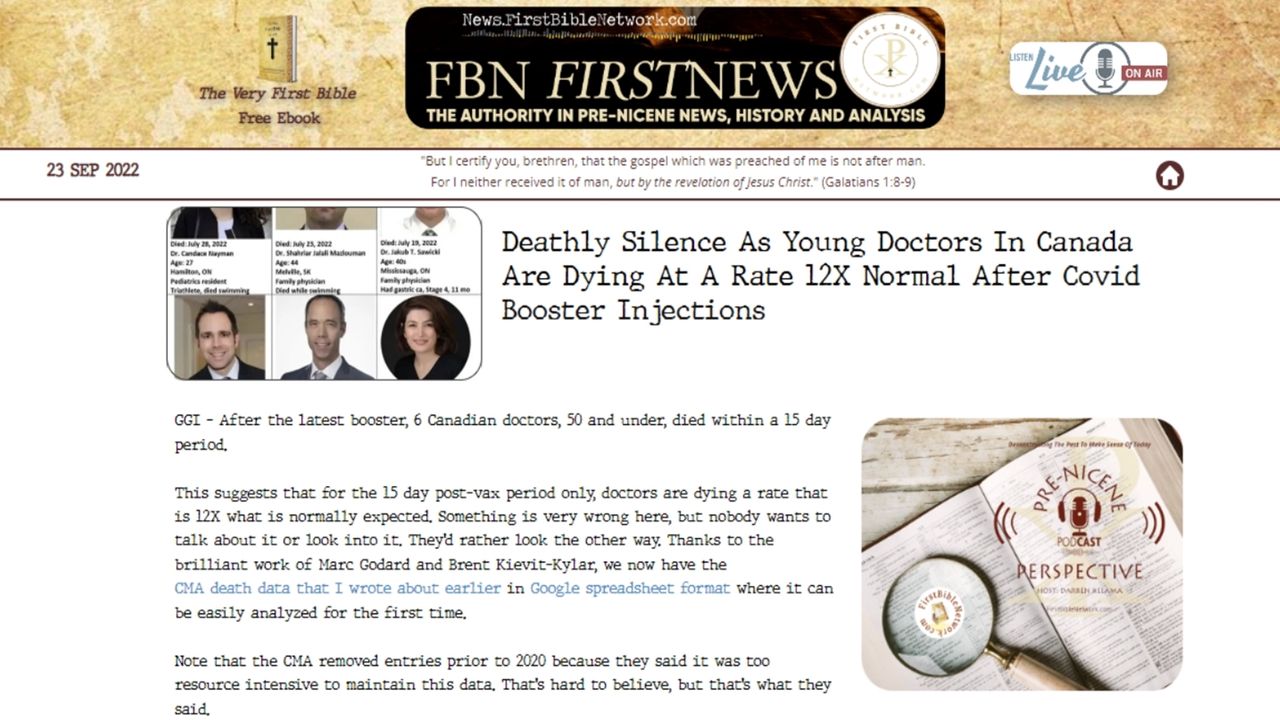 FBN Pre-Nicene Perspective News #vaxxdeaths #oktoberfest #gematria #magictv