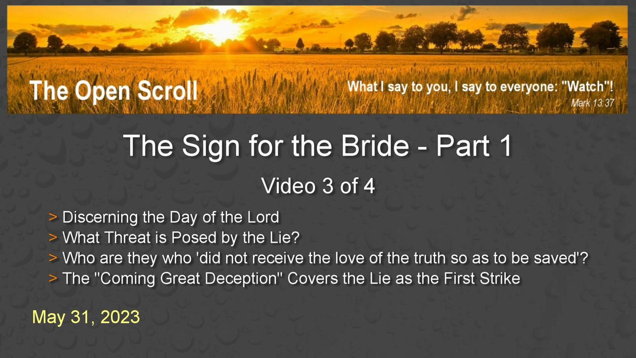 This is the 3rd (of 4) video presentations covering our recently refreshed legacy study, "The Sign for the Bride - Part 1."https://theopenscroll.com/when_cometh/bride_sign.htm