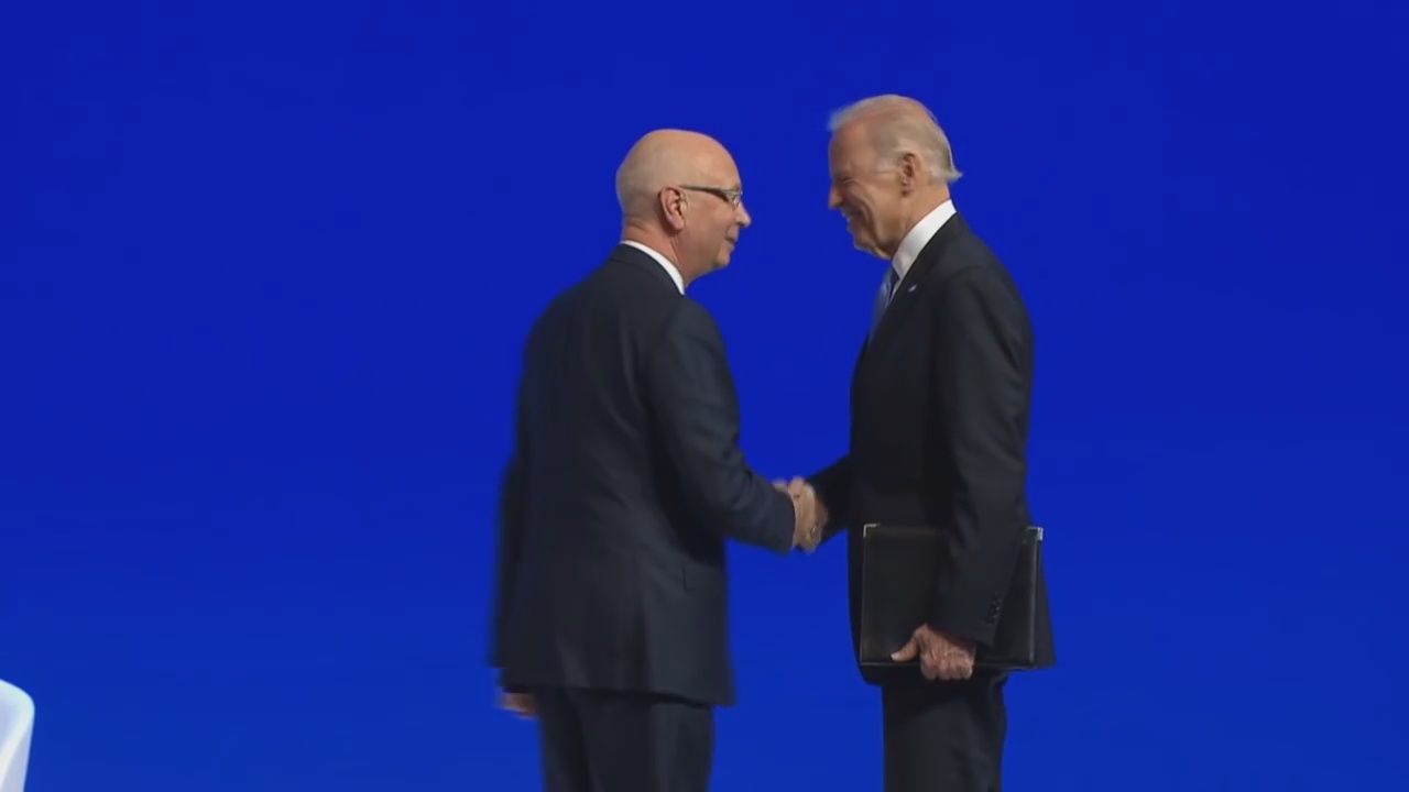 WEF founder Klaus Schwab praising Biden at Davos 2016: "One of the most hard-working participants"