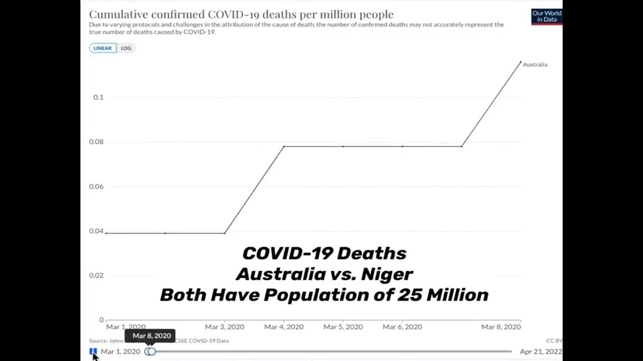 Comparativa en muertos covid por millón + vacunación entre Australia y Nigeria.