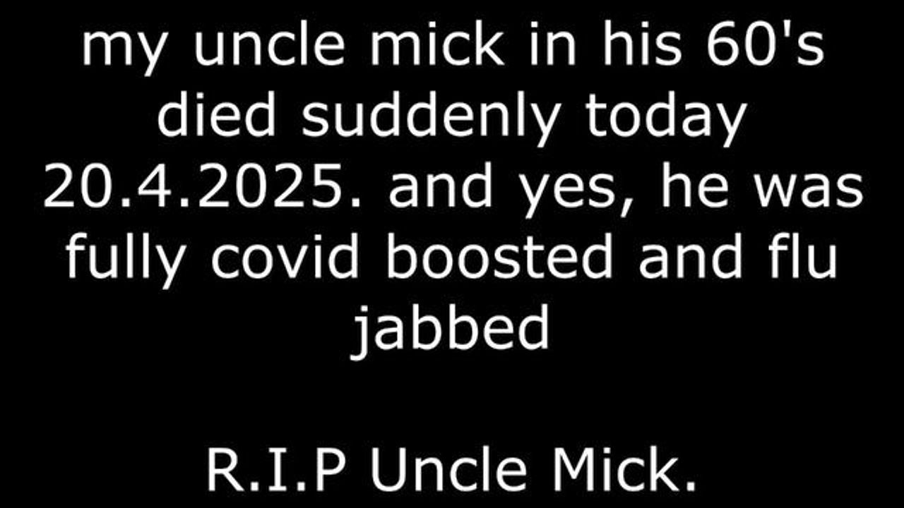 My Uncle Mick was the last of the family brothers and sisters of 5, it was only 6 months ago we buried his sister, she was found unresponsive on the kitchen floor by Mick, and now the same has happened to him, he was due to come our house for his dinner but didn't show up, so a member of the family went up, he was unresponsive on the couch, my sister's son said he had gave him a lift an hour before about 9:30am from the late shop were he always gets a newspaper and a few bits, my sisters lad and the young lad we all know tried to revive him until paramedics arrived, but he had gone. so i went up to see him ,and this footage is him lying dead on the floor. I'm hardened to it as i know all the jabbed up people are ticking time-bombs, to add i even to a police officer who turned up that he been murdered in effect by the depopuation jabs, he said is that what you think, i said i don't think, i know it is, had a little conversation, were he himself told me he's lost a cousin 3 months ago in her 30's just died, and admitted to taking 3 himself and regrets it, he took on board what i was saying and is aware on people dying, i said you will have to hope for you and your families sake you will be ok but everyone who took them are at risk of dropping dead, i wont be uploading for some days since this has happened, back soon, OMG.