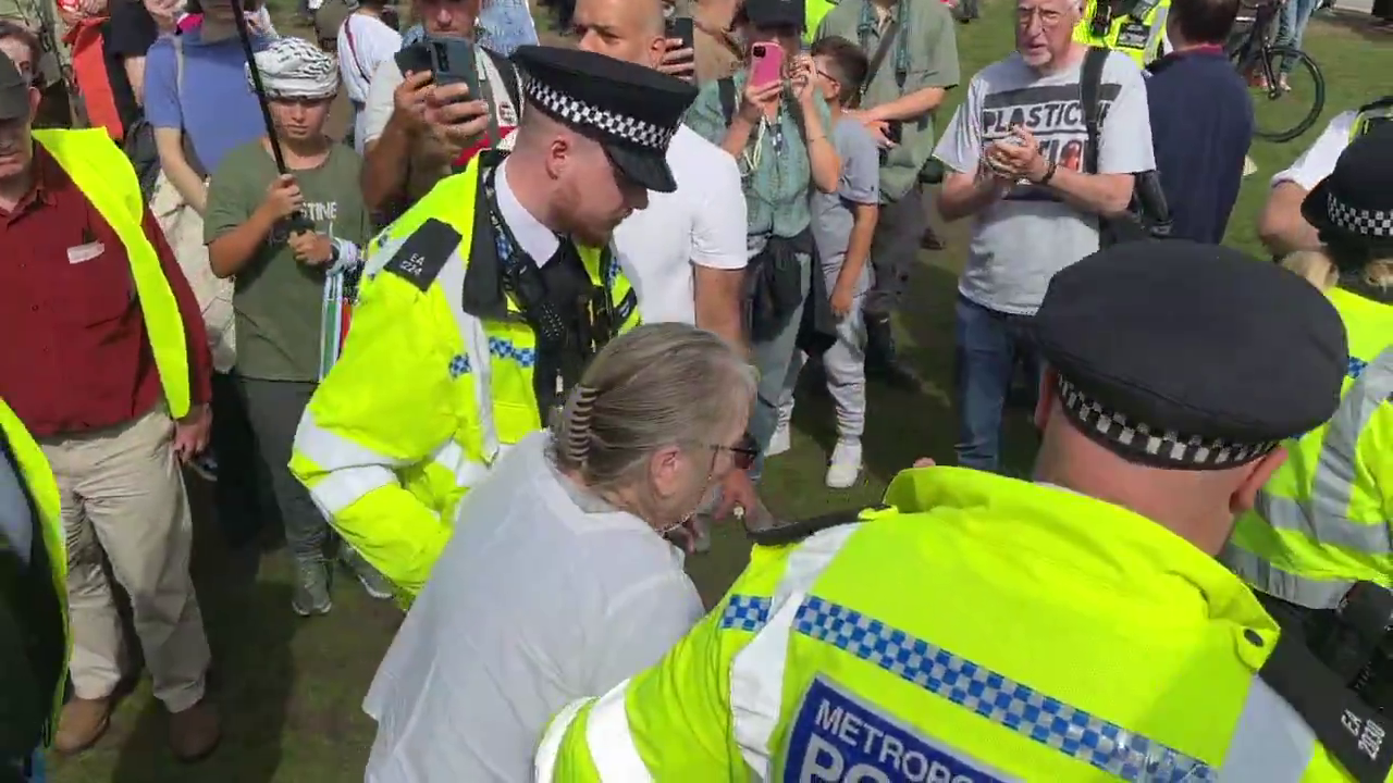 British police arrested an elderly woman at the 'I Support Palestine Action' rally in Parliament Square.