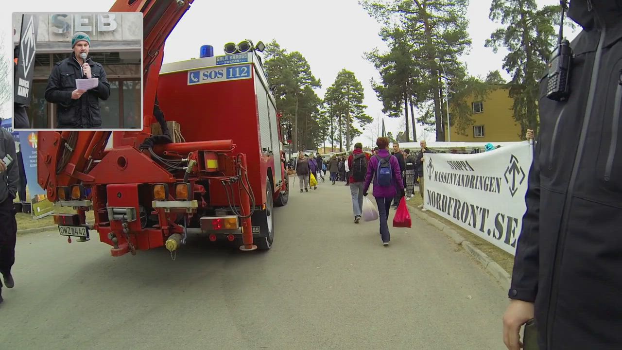 Aktivisterna valde då att flytta på sig och den banderoll man höll upp. Då försökte brandbilen backa på aktivisterna och tumult utbröt mellan aktivisterna samt polis och ordningsvakter på platsen. En av aktivisterna som omhändertogs fritogs i samband med tumultet enligt uppgift.