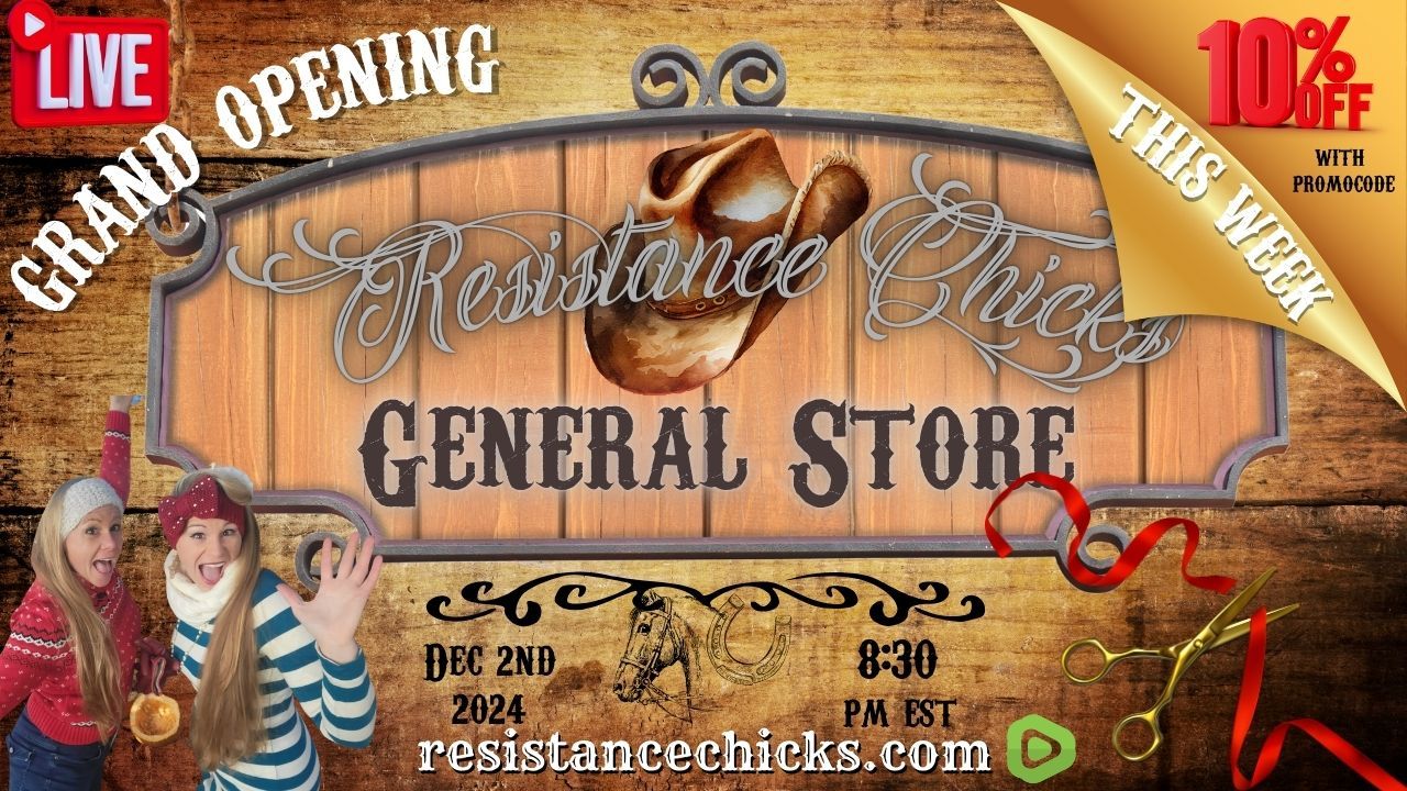 We are SO very excited to announce the Resistance Chicks General Store GRAND OPENING! Join us for our LIVE LAUNCH! Visit Shop.ResistanceChicks.com There are several things still under construction, but we have all 5 products ready to GO! Because this is our grand opening we are offering a rare discount of 10% off your entire order December 2nd-8th, 2024 Use Promo Code GRANDOPEN at checkout!Resistance Chicks are proud to partner with Zang Enterprises as the new official gold and silver company of Resistance Chicks! Learn more: www.resistancechicks.com/godsmoney