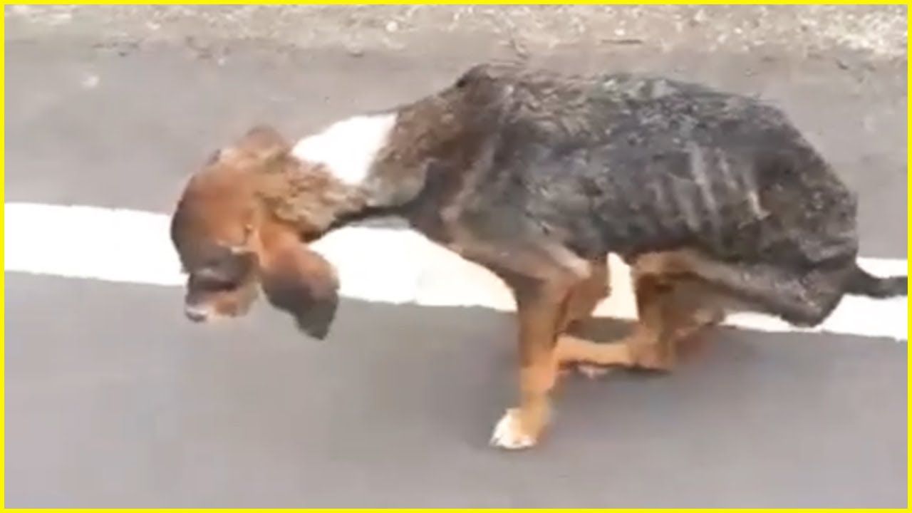 At 6 months old, the poor dog wandered on the street with half of his body disabled. When the rescue team arrived, what they saw was just a small dog on a long and wide road. She tried to drag her body forward step by step!