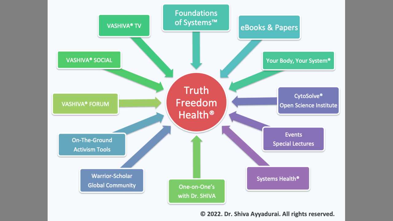 Dr. SHIVA’s most recent innovation is the Truth Freedom Health® SYSTEM that is an educational, community, and technology platform that is enabling everyday people to become wiser and smarter – to think beyond Left & Right, “Pro-” and “Anti-” – by learning the SCIENCE OF SYSTEMS – to see things as they truly are to know the real problem to innovate the real solution.