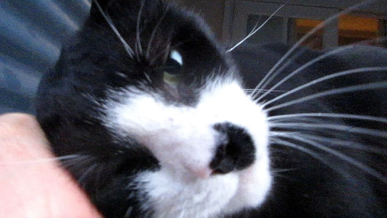 The young furry man waited patiently outside the back glass doors for
