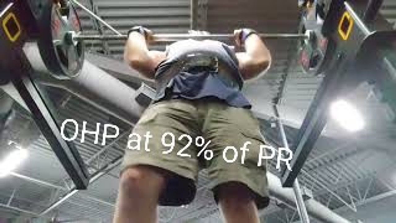 Overhead Press at 92% of PR on Singles Night. My Max PR is 200lbs. Like to see 205- 215 soon. Love to get a 225 but at 69 that might be a little to far.