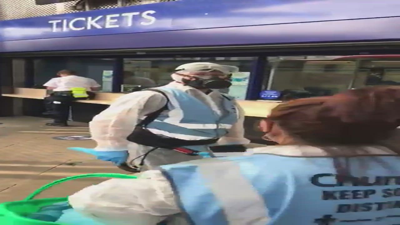Some "COVID" Cleaners caught on film posing for shots in Northern England. You can hear him say "We work for the government".