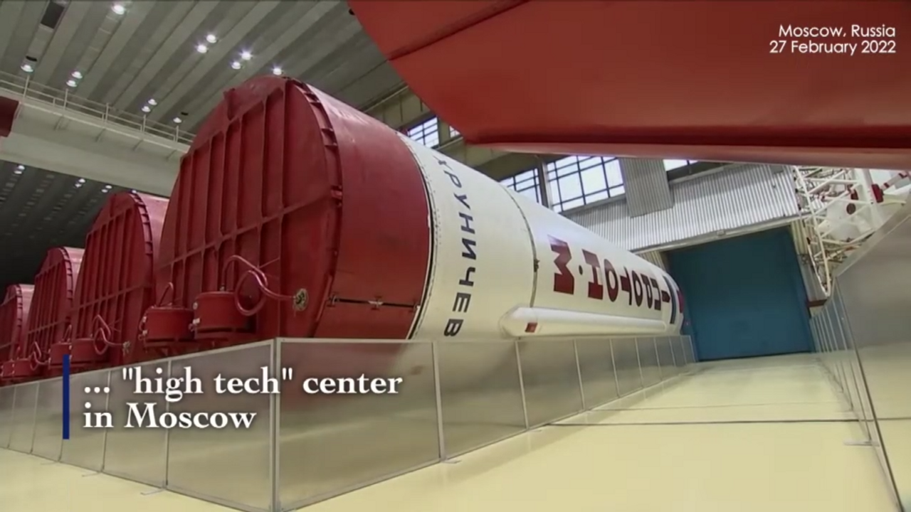 President Vladimir Putin inspects the new national space center in Moscow on Sunday.