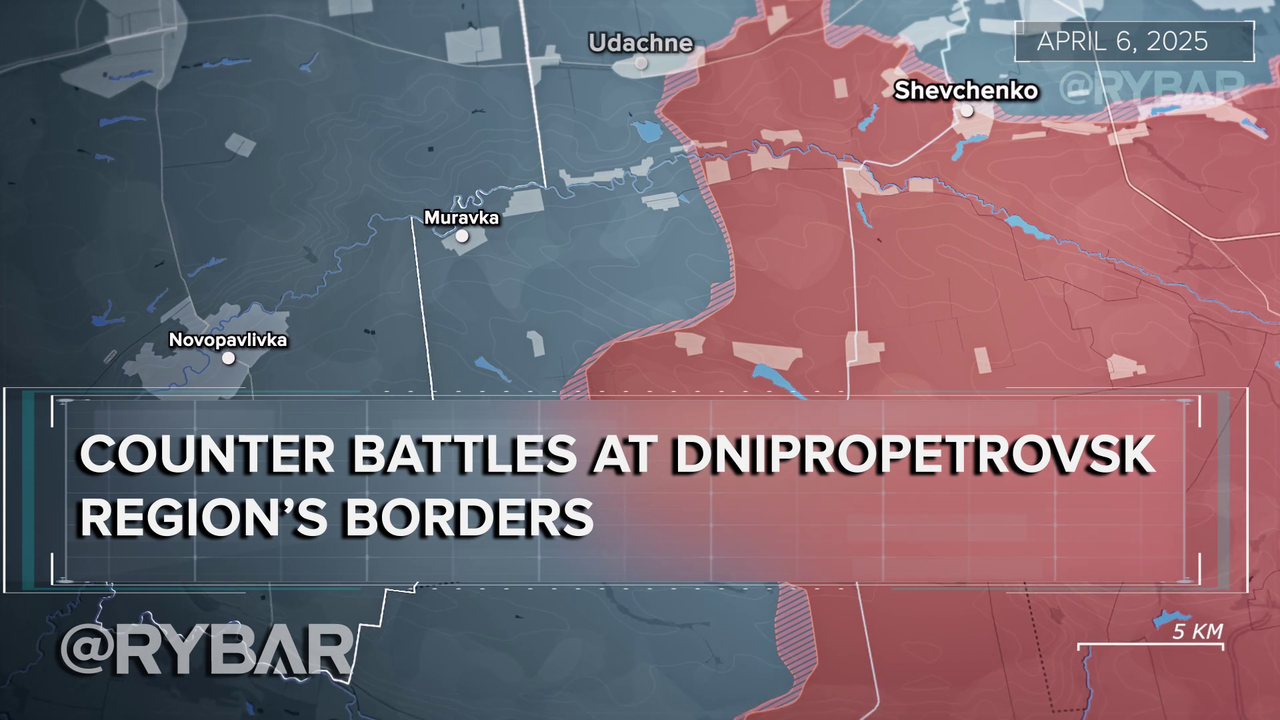 As of early April, Russian forces were advancing simultaneously at three points along the Novopavlivka direction. In the north, assault units were fighting on the approaches to Udachne; in the center, Russian troops were gradually dislodging Ukrainian forces from Uspenivka; and in the south, they were advancing along the Troitske — Bohdanivka line.