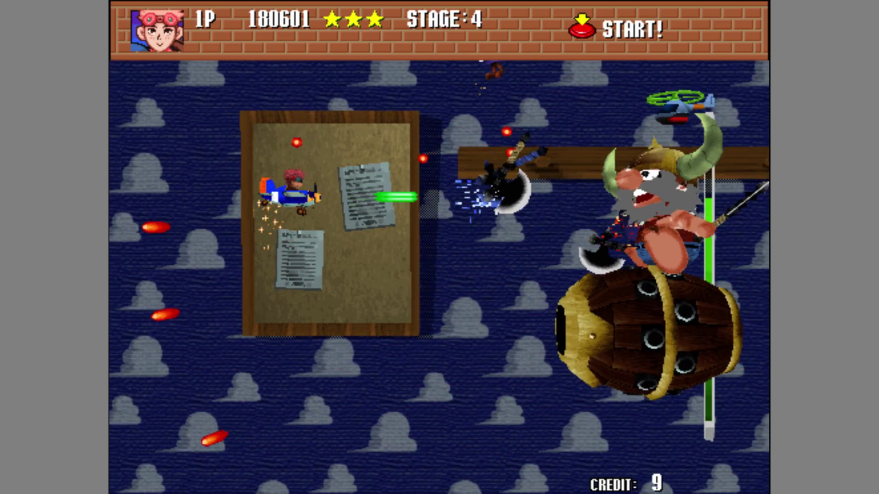Pilot Kids is a horizontally scrolling shoot'em up developed and published by Psikyo under licence from Sega. It was only released in the arcades.
