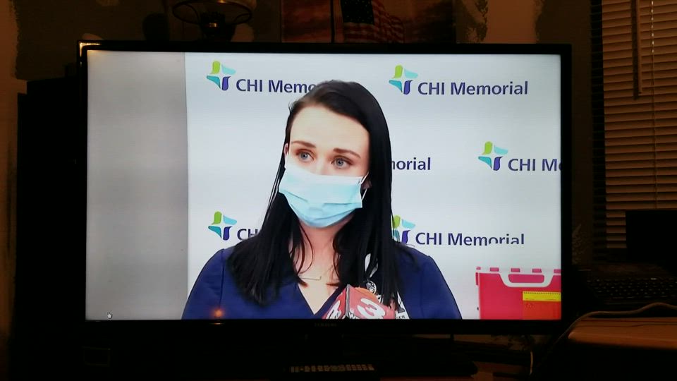 Critical care nurse Tiffany Dover at CHI Memorial Hospital in Chattanooga was having a lucid discussion with WRCBtv following her vaccination, when she became visibly impaired – holding her hand to her head and swaying. She then apologized to the news crew, turned away from the camera, and fainted.
