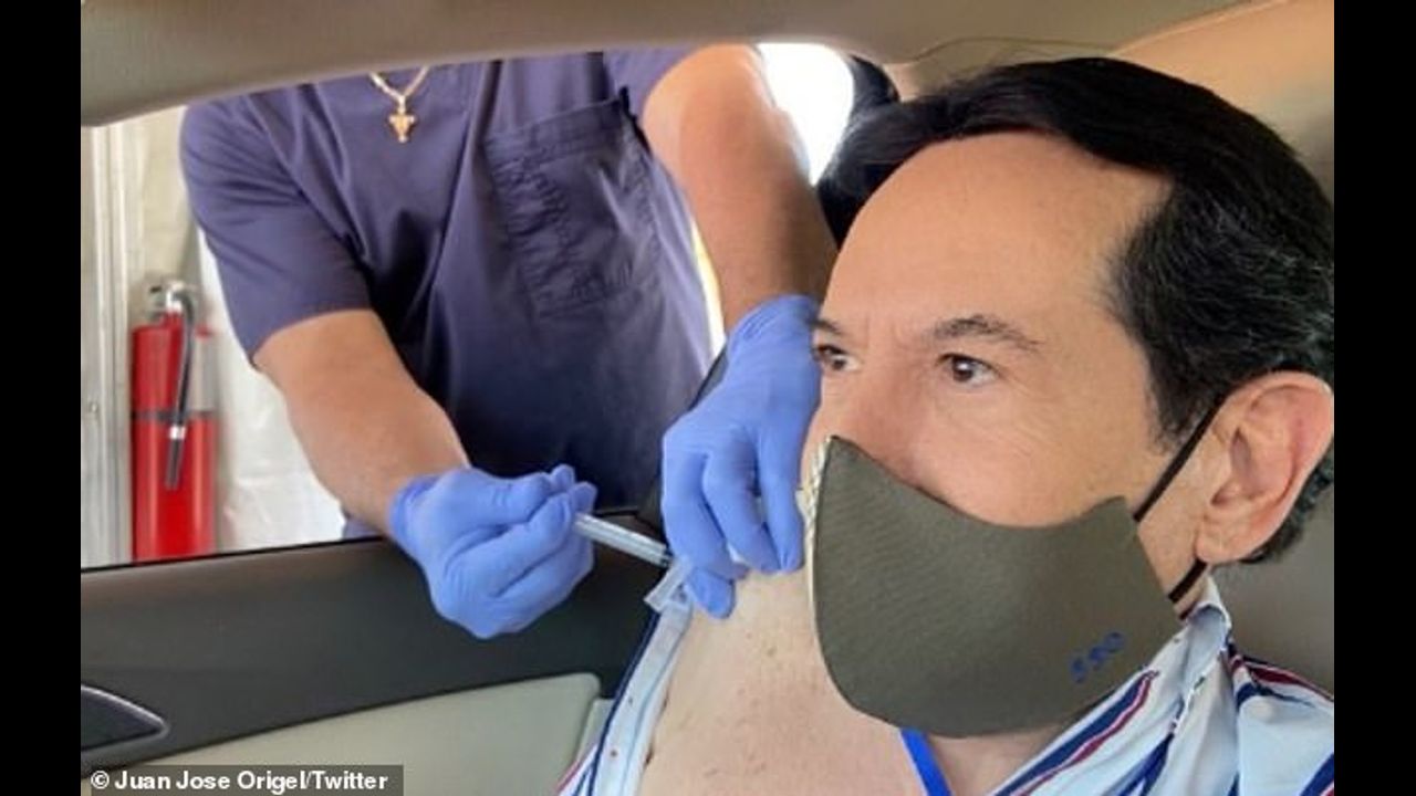 Mexican TV host Juan Jose Origel, 73, was widely condemned last week after he flew to Miami from Mexico City to get the shot and bragged: 'Thank you #USA. It's sad that my country did not offer me that security.'