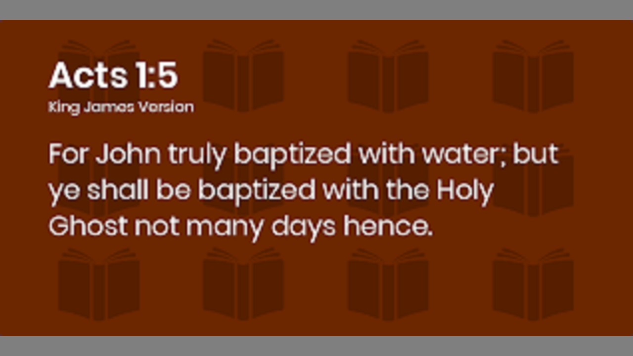For John truly baptized with water; but ye shall be baptized with the Holy Ghost not many days hence. Acts 1:5