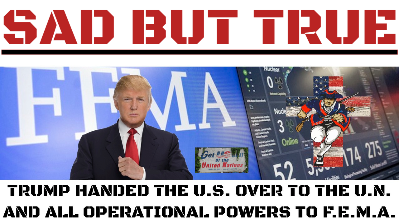 1. TRUMP HANDS THE US OVER TO THE UN AND ALL OPERATIONAL POWERS TO F.E.M.A. - https://www.bitchute.com/video/oo2YORu41weW/