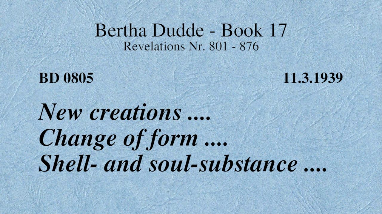 BD 0805 - NEW CREATIONS .... CHANGE OF FORM .... SHELL- AND SOUL-SUBSTANCE ....