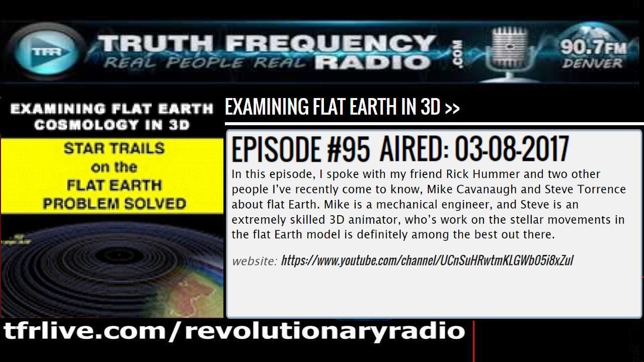 In this episode, I spoke with my friend Rick Hummer and two other people I’ve recently come to know, Mike Cavanaugh and Steve Torrence about flat Earth. Mike is a mechanical engineer, and Steve is an extremely skilled 3D animator, who’s work on the stellar movements in the flat Earth model is definitely among the best out there.