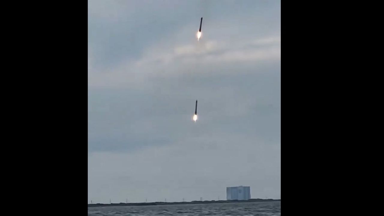 Elon Musk shares video of not one, but two rockets relanding after being blasted off