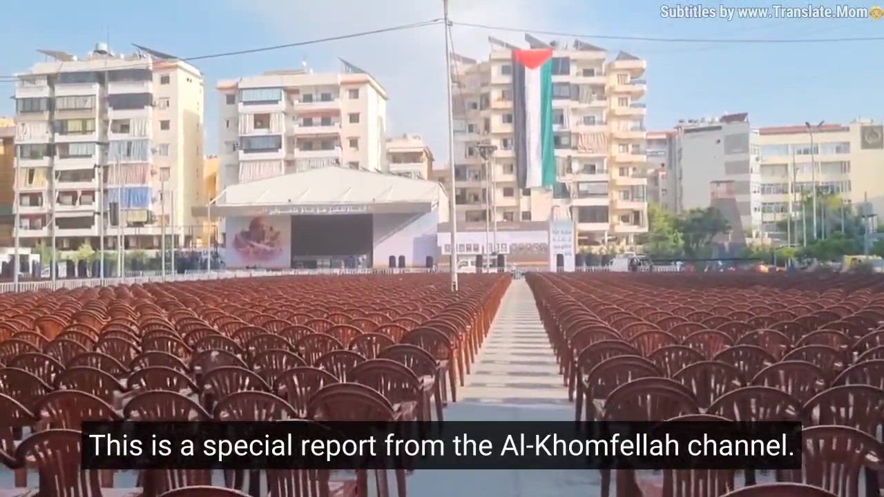 In preparation for the ceremony in which Sayyed Hassan Nasrallah will speak at 15:00 tomorrow, Hezbollah sets the stage with the slogans "The next world is the world of Palestine" and "Martyrs on the road to Al-Quds."