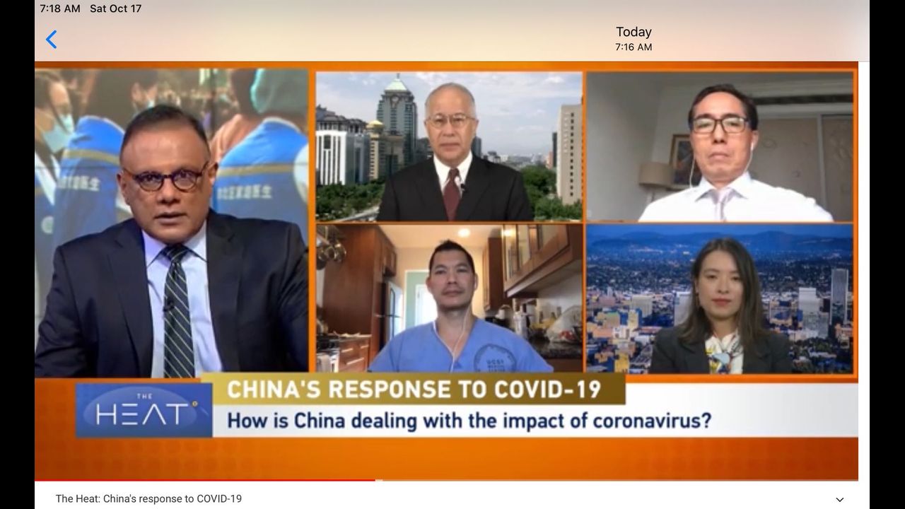 As a guest on The Heat panel discussion on CGTN (China Global TV Network, Washington DC) on Oct. 14th to discuss Covid-19. In this 30-min program, I pointed out that the ”vaccine only“ strategy to Covid-19 is incomplete and we probably will be disappointed. Flu vaccines are one of the most common vaccines. A large review of clinical trials of flu vaccines on healthy adults shows that the flu vaccine is only marginally effective (https://www.cochrane.org/CD001269/ARI...). Moreover, at least 12000 mutations have been found on Covid-19 virus (https://www.nature.com/articles/d4158...). On top of all these, there seems to be a great proportion of Americans who may not be willing to take the Covid-19 vaccine. We need a better and more inclusive Covid-19 strategy. We need to be prepared that Covid-19 vaccines may not be as “miraculous” as being touted. We need to incorporate preventive medical strategy as I described in Protected Population Immunity to include Vit C, D3, Magnesium, zinc and quercetin etc.