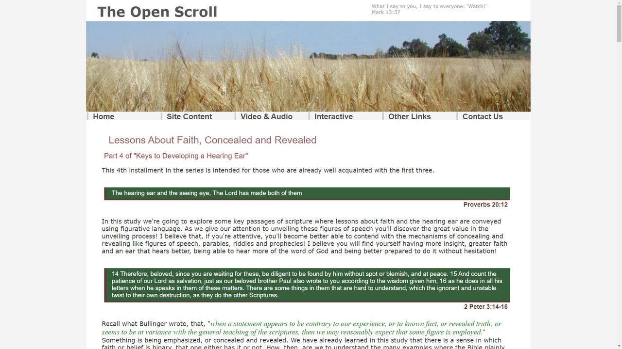 Lessons About Faith, Concealed and Revealed - "Keys to Developing a Hearing Ear" - Part 4