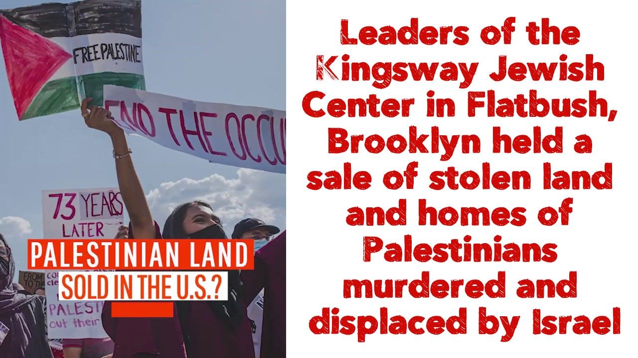 People trade barbs after the leaders of the Kingsway Jewish Center in Flatbush, Brooklyn held a sale of stolen land and homes of Palestinians murdered and displaced by Israel.
