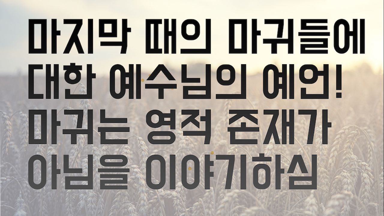 예수님께서 마지막 때의 깨어있는자들을 위해 주신 말씀, 알곡과 가라지의 비유를 설명하고, 마귀가 뿌린 씨앗, 즉 가라지가 누구인지 설명하는 영상