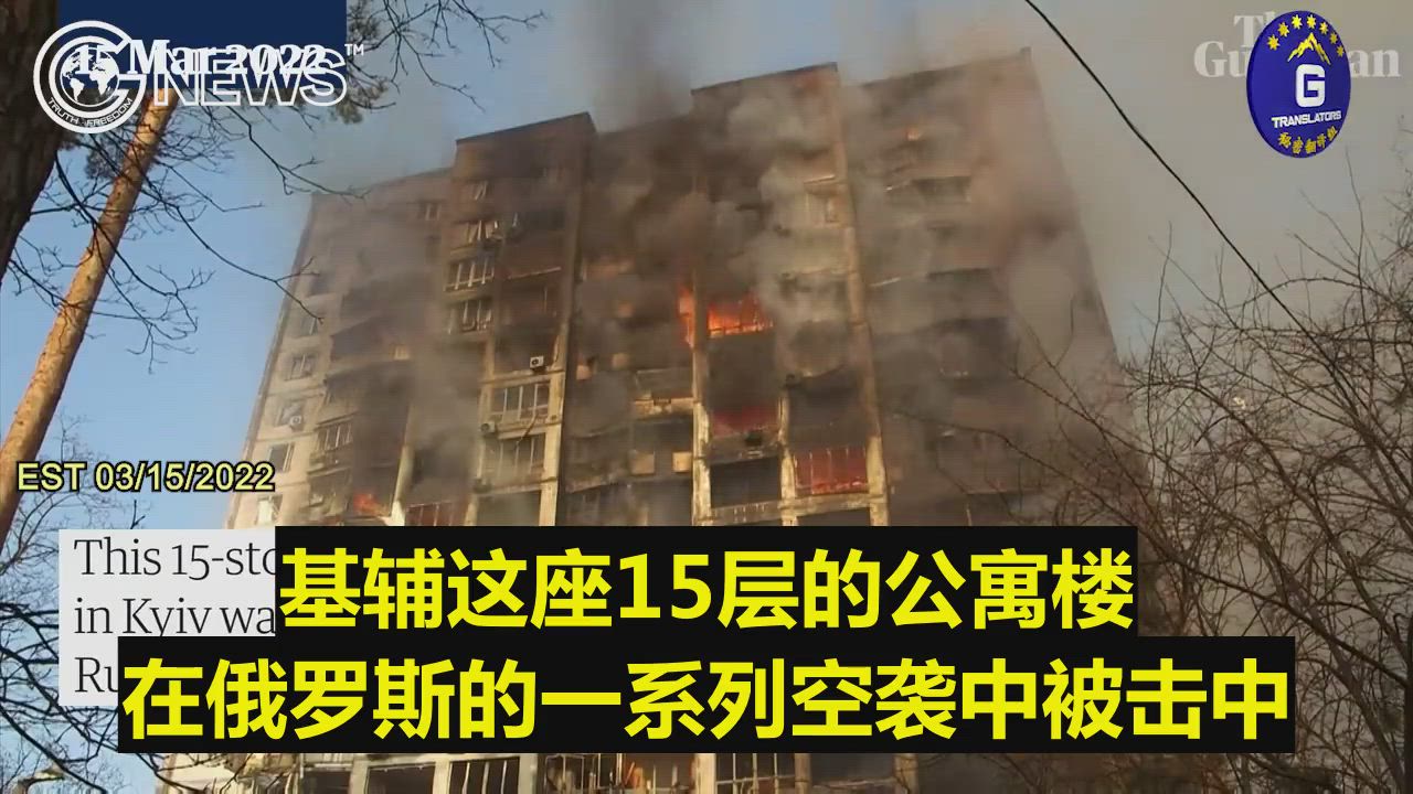 03/15/2022 Guardian News: 15-storey residential building hit as attacks on Kyiv continue