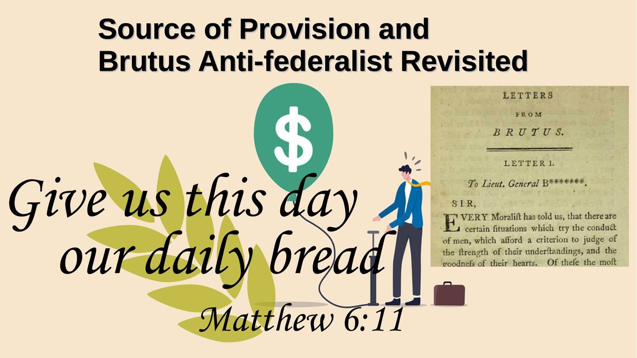 Brutus No. 1 is revisited in this program and I do hope that we take note of the warnings such that we have courage to act so as to secure Liberty over economy by first understanding the Source of Provision in all things.