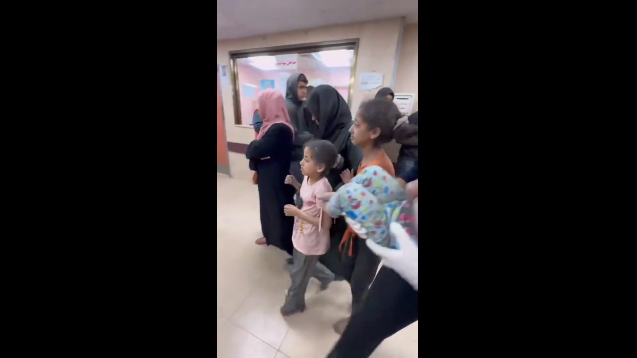 Injuries, most of them innocent children, reach Al-Aqsa Martyrs Hospital after the criminal #Israeli occupation army targeted a mosque last night, in the Al-Hakar area in Deir Al-Balah, central #Gaza Strip.