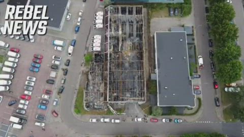 DRONE: Aftermath of the fire at the Picnic supermarket company which is funded by The Bill and Melinda Gates Foundation in Almelo, Netherlands.