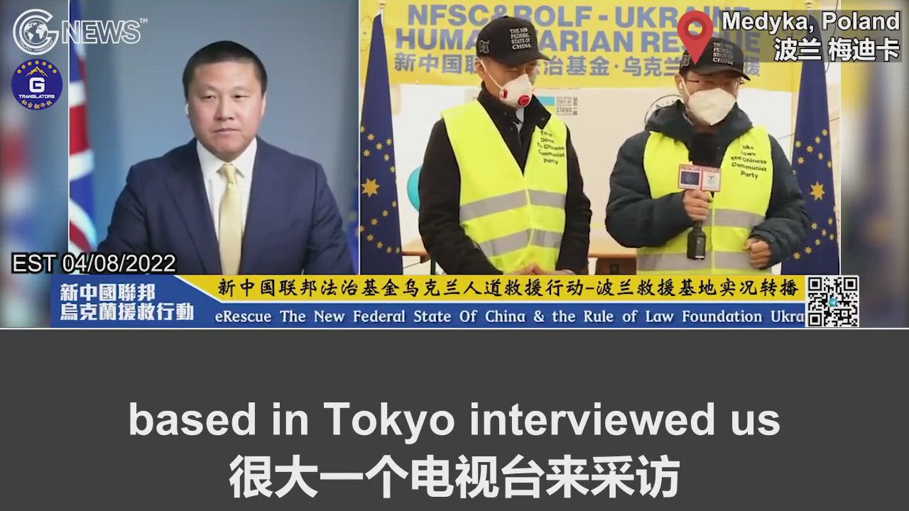 4/8/2022 Ukraine Rescue: A top Japanese TV station was attracted by the Ukraine rescue camp of the New Federal State of China and took the initiative to conduct a nearly 30-minute interview with our fellow fighters on the rescue frontline. Our fellow fighters are once again spreading our philosophy of taking down the Chinese Communist Party to the rest of the world