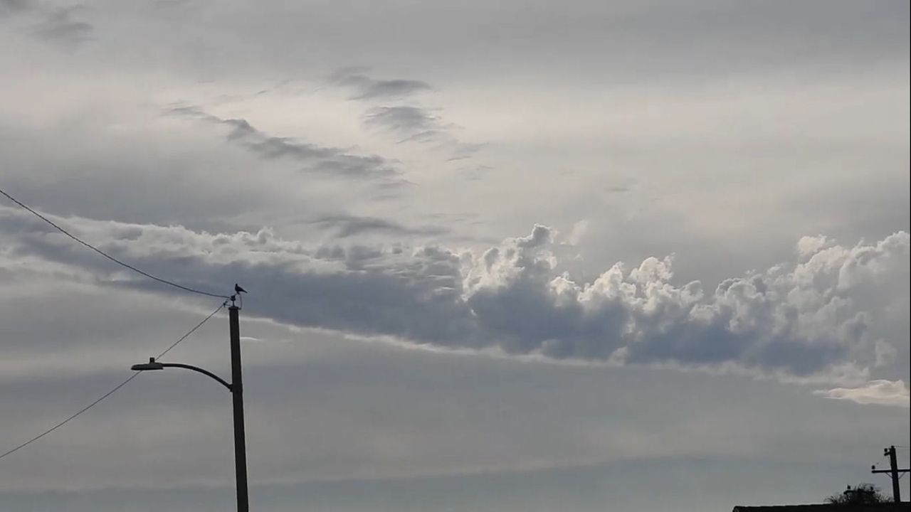 More artificial weirdness above us. 5:45 pm Aug. 19. Tomorrow is supposed to be the storm ....so we will see what happens. It is very hard to trust weather that you know is controlled and manipulated by evil.