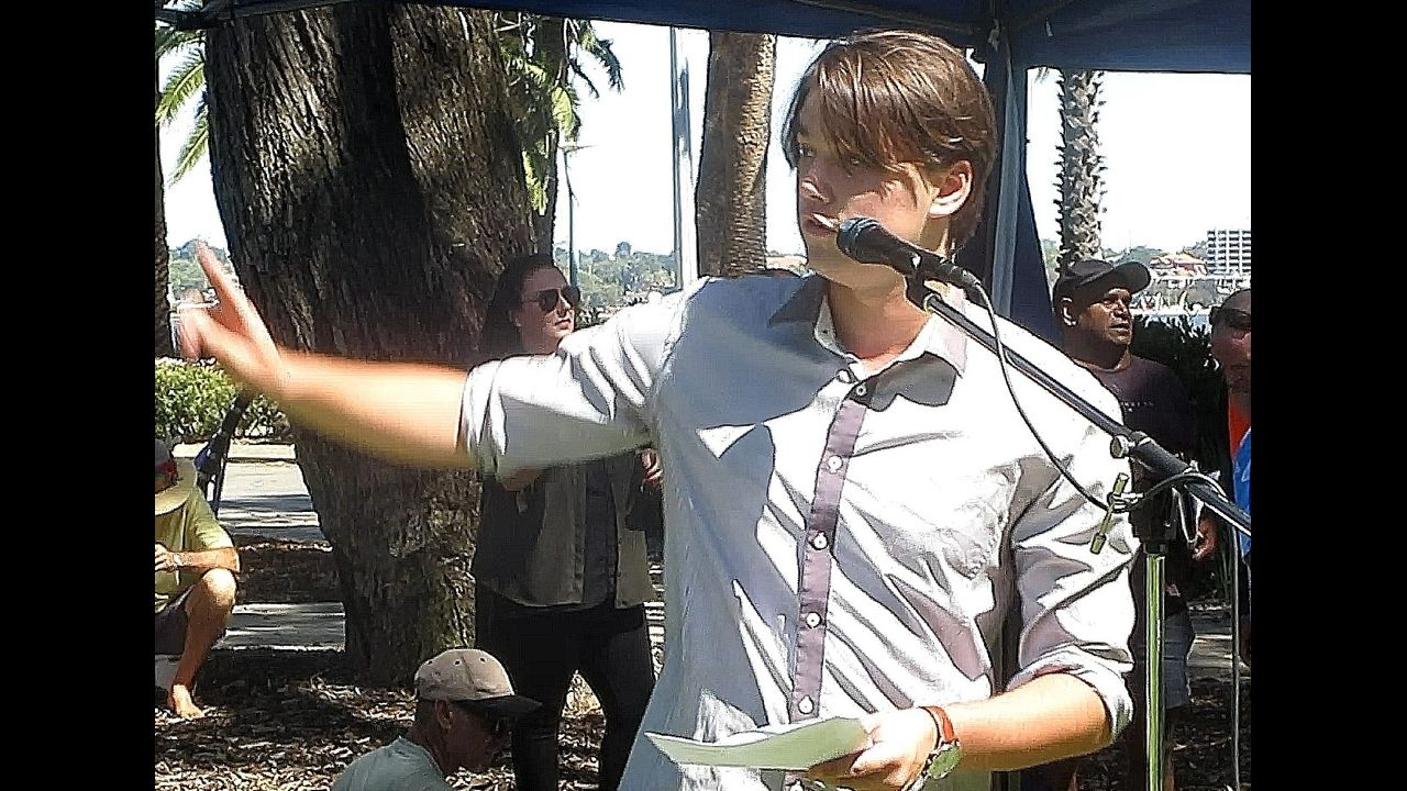 It is almost exactly 3 months since the last major protest rally in Perth. This must be about number 36 for me. I was disappointed, again, at the low attendance, however, the quality of attendees, speakers, and musicians was superb. Average age? Fifty? Where are the droves of young people? I estimate under five hundred of us, and a mob of police. It’s one second to midnight, and Western Australians are sound asleep, comfortable again with the few crumbs of freedom thrown back to them from the mongrels in government.