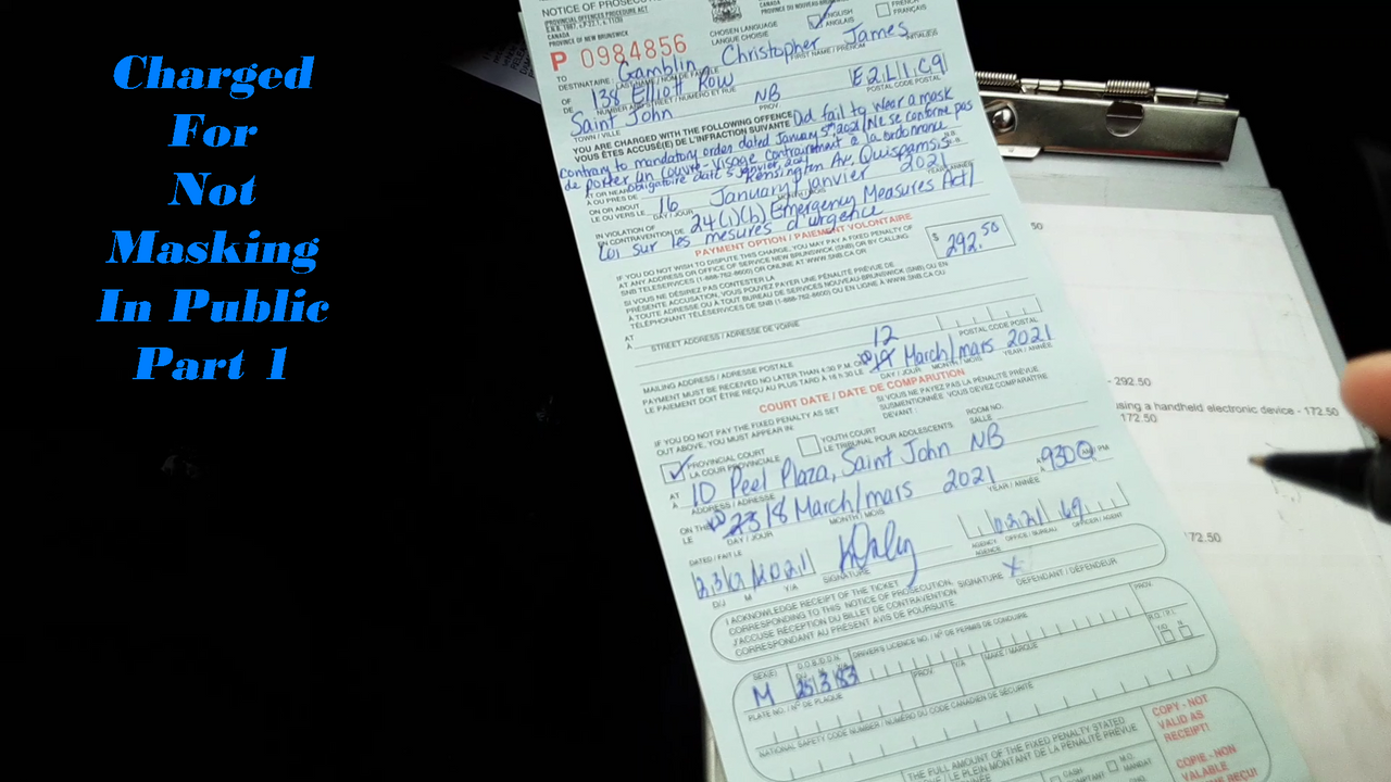 I was charged with not masking by Kennebecasis RCMP On January 23rd, 2021 for not wearing a mask at a rally on January 16th, 2021